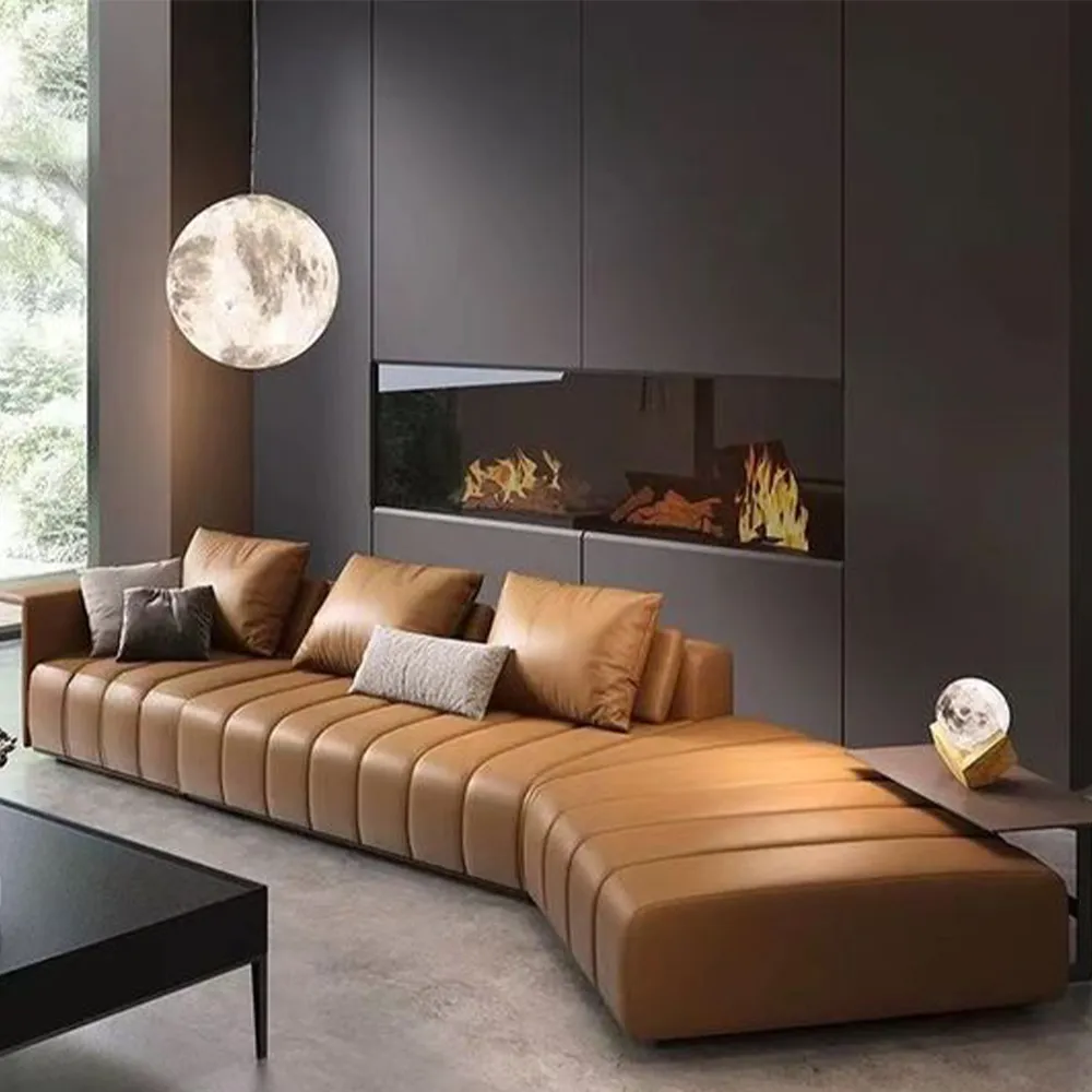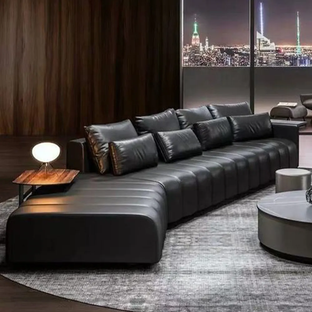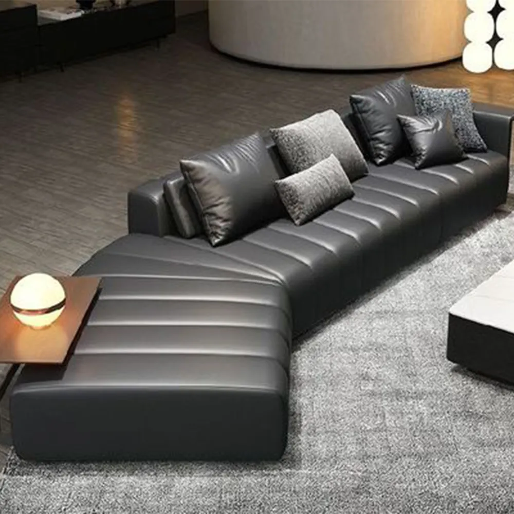 Leather sofa living room modern light luxury Italian minimalist. L- shape sofa with the most comfortable seating. Giving modern yet minimalistic design to your living room.