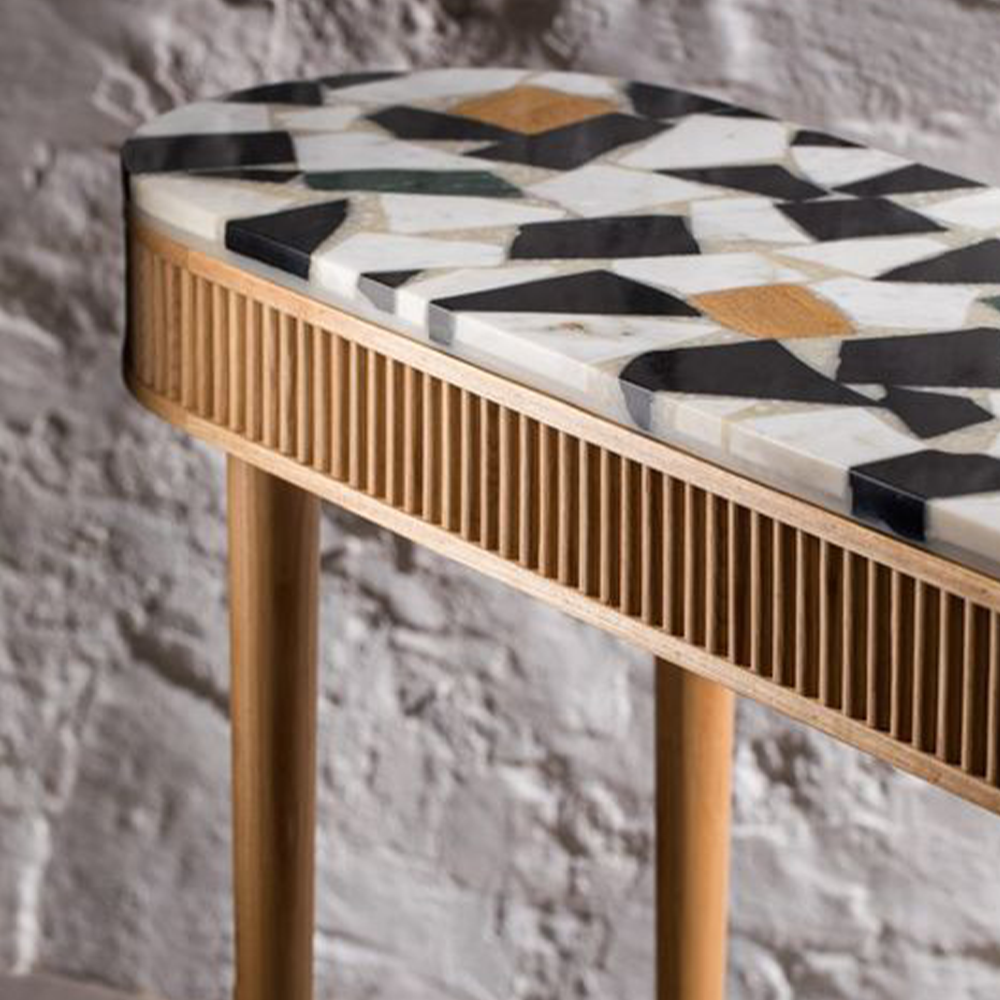 Very sleek design console made of wood and the top is made of Bone Inlay tile.