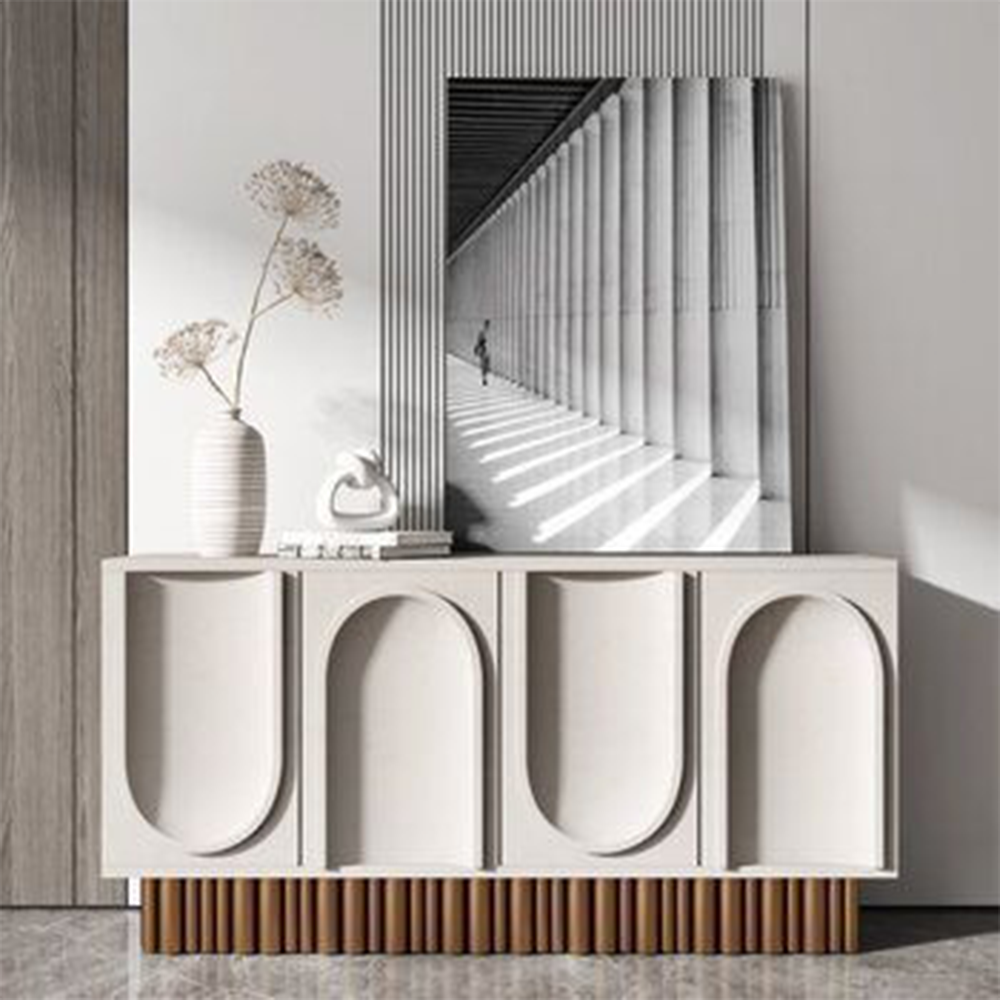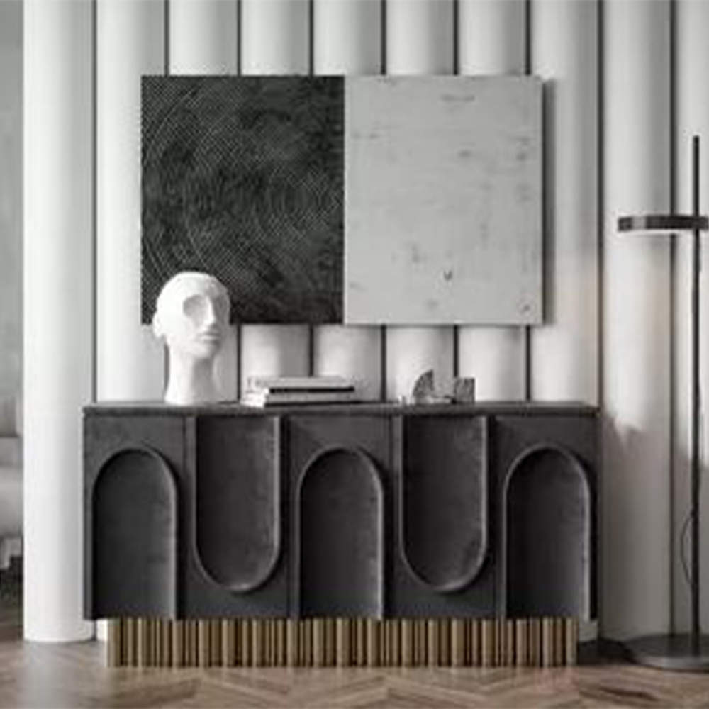 U console is modern luxury design. With Base made of metal with brass polish to give a elegant look and feel to the console.