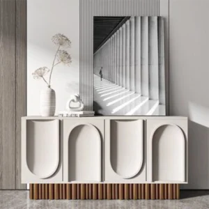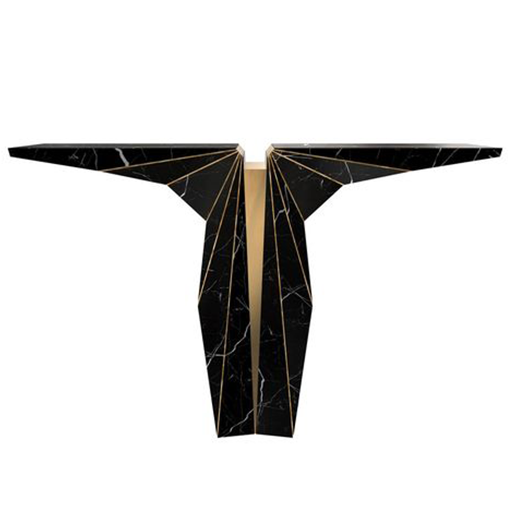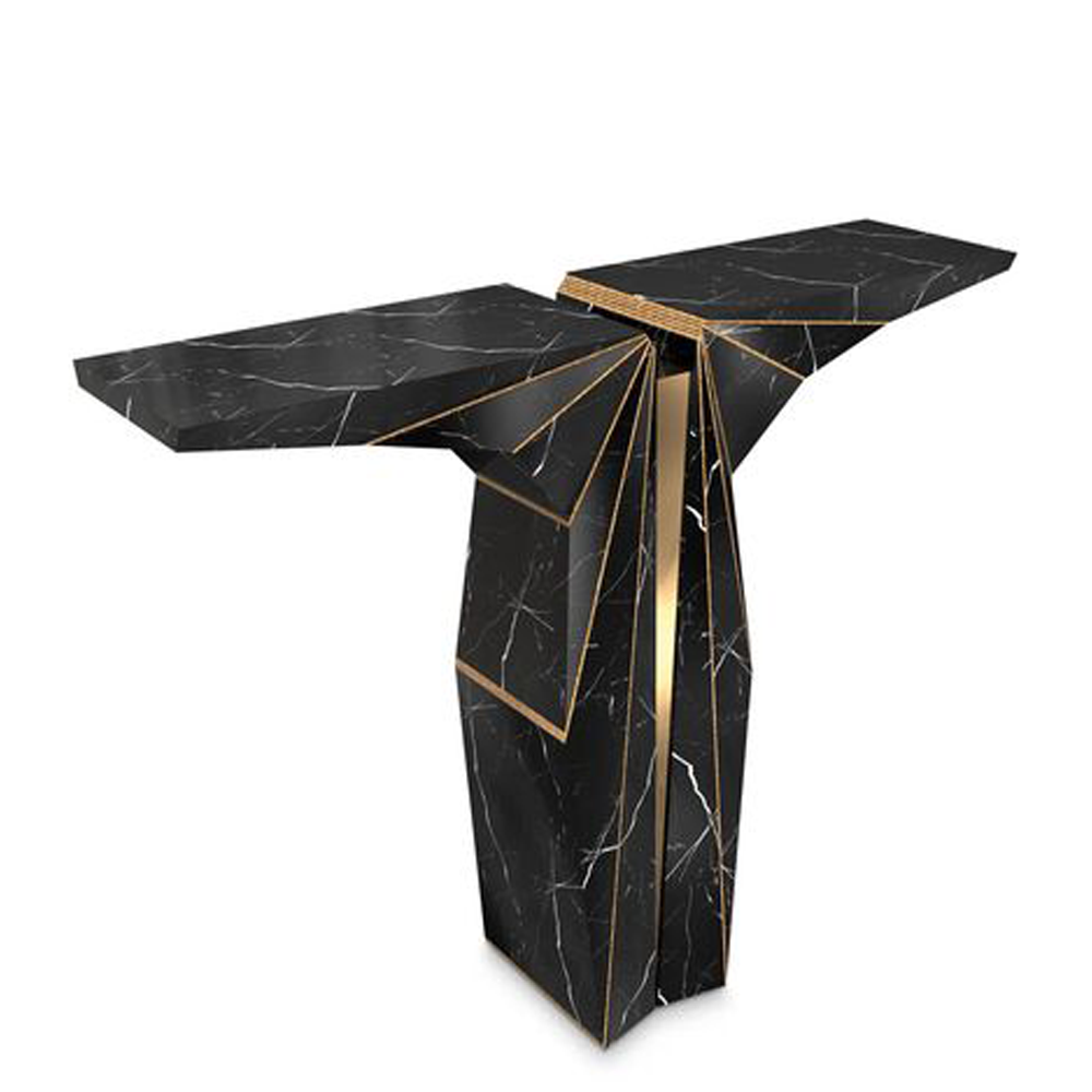 Zeus Console, A very modern luxury console made of wood and with brass inlays on it.